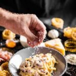 2. In a large skillet over medium heat, cook the pancetta or guanciale until crispy. Add the minced garlic and cook for an additional minute.